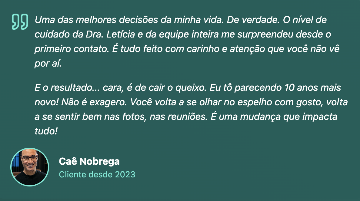 Analise fotografias de antes e depois de casos reais. Busque referências de outras pessoas que realizaram o tratamento.